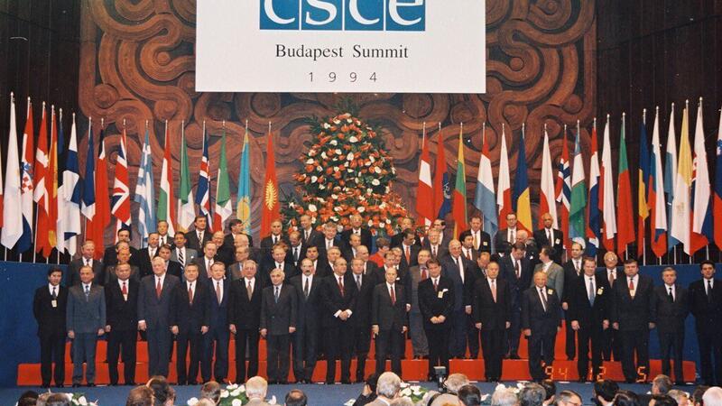 Photo of the OSCE Istanbul Summit, showing diplomats, country representatives, and media capturing the high-level discussions.