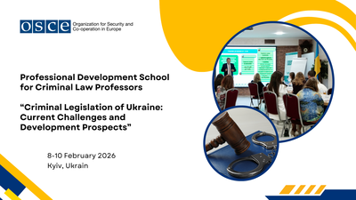 To support the professional development of criminal law professors at higher education institutions, the OSCE Support Programme for Ukraine, in cooperation with the Supreme Court and in partnership with Yaroslav Mudryi National Law University, announces the call for participants for the Professional Development School for Criminal Law Professors “Criminal Legislation of Ukraine: Current Challenges and Development Prospects”, which will take place on 8-10 February 2026 in Kyiv.